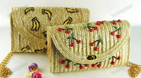Соломенные аксессуары – бум в мире моды! Стильные, удобные и невероятно красивые, они будут выгодно смотреться с летними платьями или костюмами, подчёркивая Вашу неординарность и любовь к модным тенденциям. Такой клатч, выполненный из натурального материала, сделает Ваш образ незабываемым и подарит по-настоящему новые ощущения, ведь его так приятно держать в руках! Украшенный прикольными бананами и вишенками, он обязательно поднимет настроение и будет кстати на пляже, прогулке или летнем кафе!