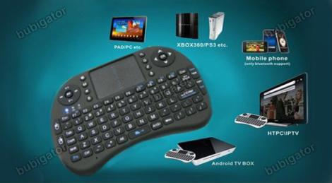 Беспроводной манипулятор, совмещающий функции клавиатуры с тачпадом и аэро мыши. Гироскопическая аэро мышь распознает движения в пространстве и не нуждается в рабочей поверхности.